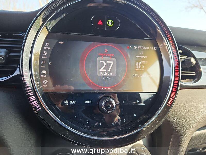 Specchietti retrovisori in tinta Cromature esterne Maniglia del portellone posteriore in nero lucido Always Open Timer Indicatori di direzione bianchi Computer di bordo Terza luce di stop a LED nella parte inferiore del soft top Bullone antifurto Fari a Led Sedili anteriori regolabili Radio digitale DAB Impianto audio con touchscreen MINI Connected Connessione iOS - Android Strumentazione digitale con display Comandi al volante Chiave di riserva Keyless system Start & Stop Sedili abbattibili Fissaggi isofix Alzacristalli elettrici Alette parasole Portabicchieri Illuminazione bagagliaio Specchietti retrovisori elettrici - riscaldabili Airbag frontali Airbag laterali Airbag Sicurezza Cinture di sicurezza Kit emergenza Abs Controllo della frenata Controllo della frenata Sicurezza Servosterzo Servosterzo Assale anteriore a snodo singolo e montanti molleggiati (McPherson) Assale posteriore a bracci multipli (Multi-Link) Indicatore pressione pneumatici Condition Based Service (indicatore prossimità dell'intervento di manutenzione) Presa 12V aggiuntiva Chiusura centralizzata Sensori parcheggio posteriori Pacchetto fumatori Sistema di chiamata d'emergenza TeleServices Fari automatici e sensore pioggia Remote Services e integrazione con MINI App Bracciolo anteriore Doppio scarico Personalizzazione colori esterni Personalizzazioni linea e stile Selettore stile di guida Cambio automatico a 8 marce Tachimetro e contagiri dedicato JCW Freni Brembo Personalizzazioni linea e stile Portellone bagagliaio elettrico Retrovisore interno anabbagliante Fissaggi isofix Pacchetto Sedili riscaldabili Illuminazione abitacolo Climatizzatore automatico a due zone Adaptive cruise control Pacchetto Radar Impianto di navigazione Interni in pelle e tessuto Personalizzazioni linea e stile Cerchi in lega da 18 Sospensioni regolabili Volante in pelle Interni personalizzazione colori Traffic information
